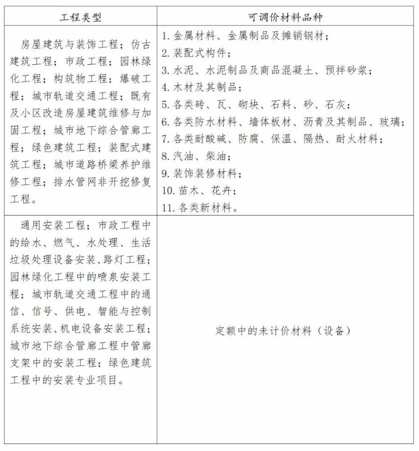 1.可调价材料和工程设备价格调整